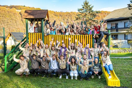 Jesenovanje 202512.11.2025Kamorkoli pogledaš, že lahko vidiš drevesa, katerih listi se barvajo v različne odtenke rumene, rdeče in oranžne barve. Vsak tabornik iz Rodu Louis Adamič tako že dobro ve, da se približuje jesenovanje. To je akcija, ki jo vsako leto izvedemo med krompirjevimi počitnicami. Tokrat smo se med 24. in 27. 10. odpravili na jesensko pustolovščino v Osnovno šolo Želimlje. V petek smo se polno spakirani odpeljali izpred gasilskega doma Grosuplje. Hitro si je vsak našel svoj kotiček za spanje in zabava se je lahko začela. S polnimi želodčki smo prvi večer naprezali svoje možgančke, saj so nam vodniki pripravili prav zanimiv kviz. Polni energije smo komaj zaprli oči in se naslednji dan prebudili v lepo sončno jutro. Dneve smo začenjali z jutranjimi zbori, da pa smo se res dodobra prebudili, smo imeli tudi jutranjo telovadbo. V dopoldanskem času so se MČ-ji -