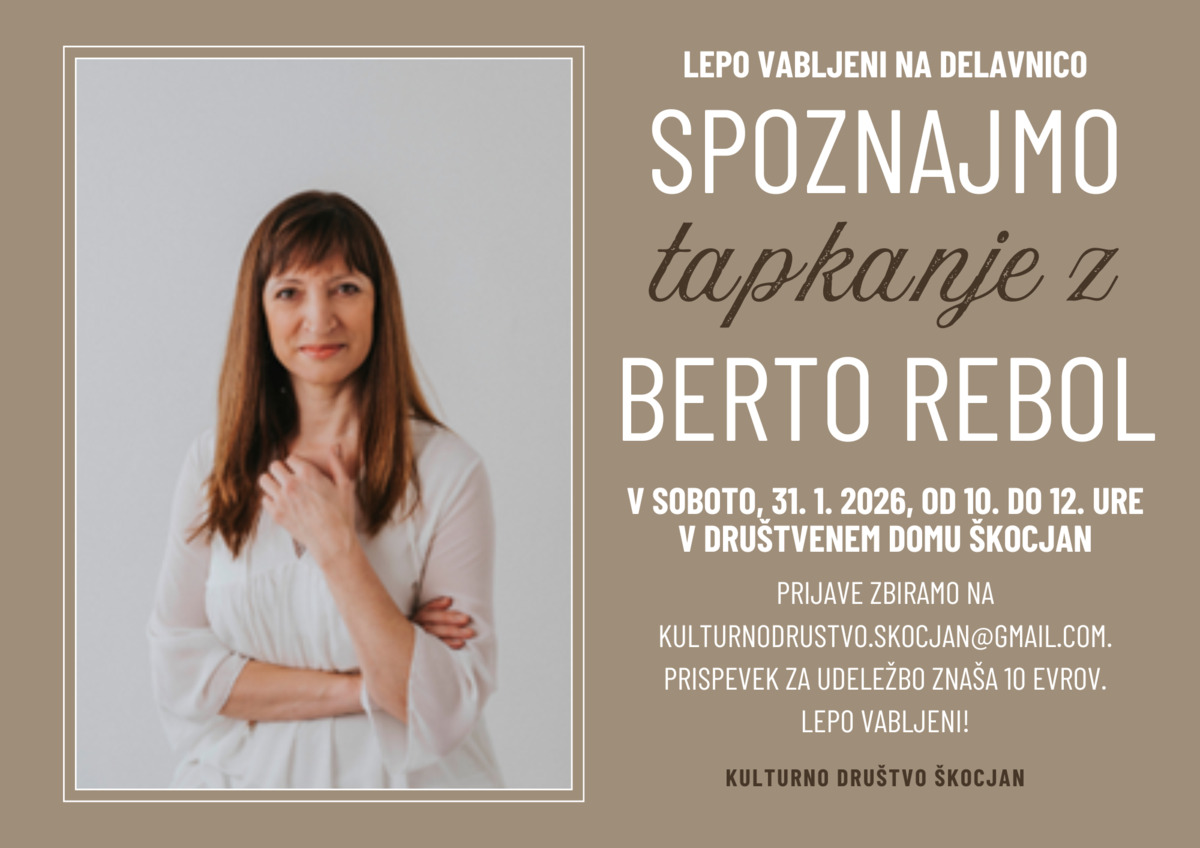 Prijave za udeležbo na predstavitvi tapkanja zbiramo prek e-pošte kulturnodrustvo.skocjan@gmail.com do 15. januarja 2026.