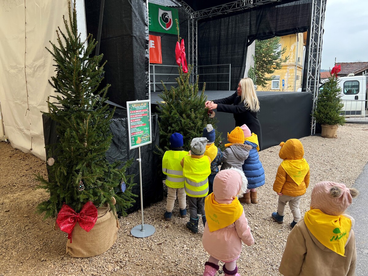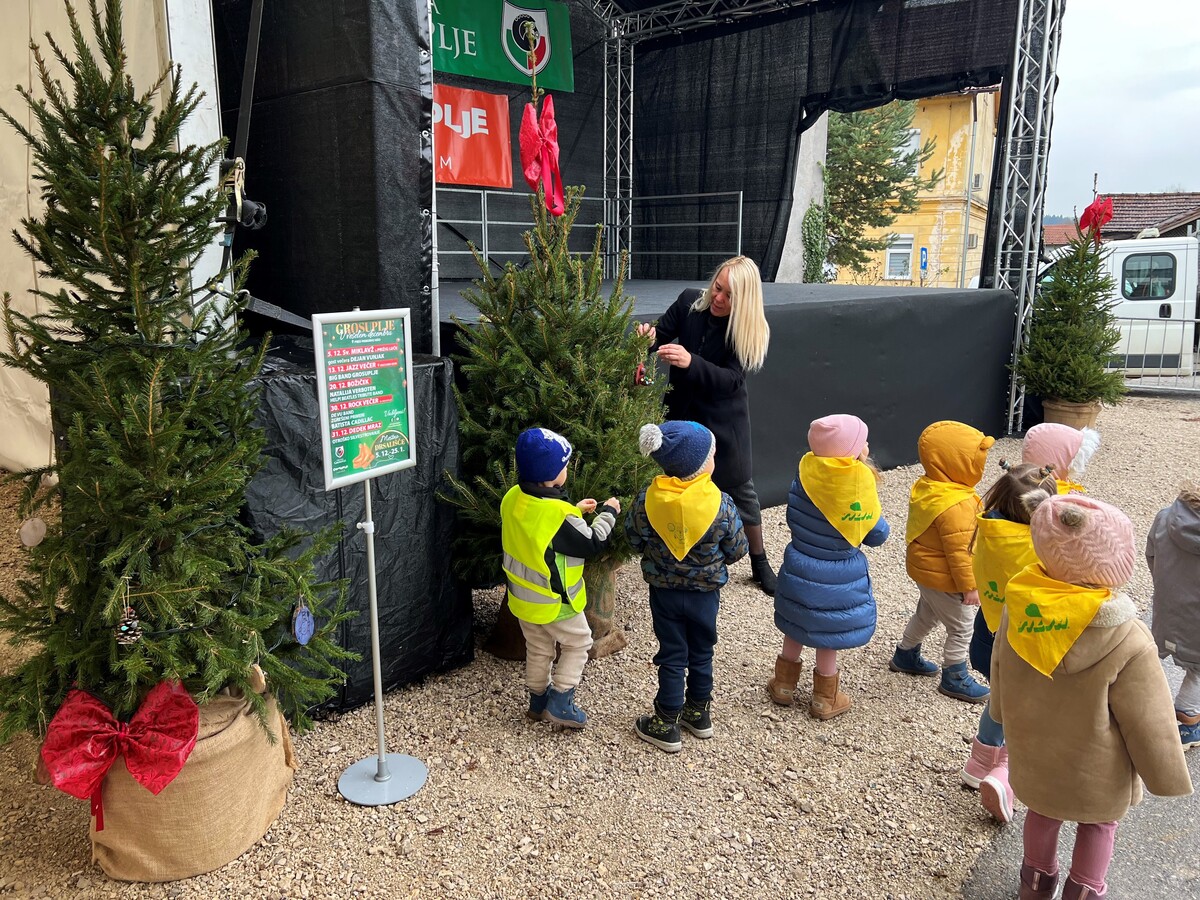 Veseli december v Grosupljem se pričenja. Mestno drsališče so danes že obiskali otroci iz vrtca Kekec ter poskrbeli za zadnje praznične detajle – okrasili so božične smrečice ob drsališču. Pridružila sta se jim tudi župan dr. Peter Verlič in direktorica uprave Zdenka Grozde, ki sta se otrokom zahvalila za čudovite okraske, s katerimi bodo polepšali praznično dogajanje v mestu.