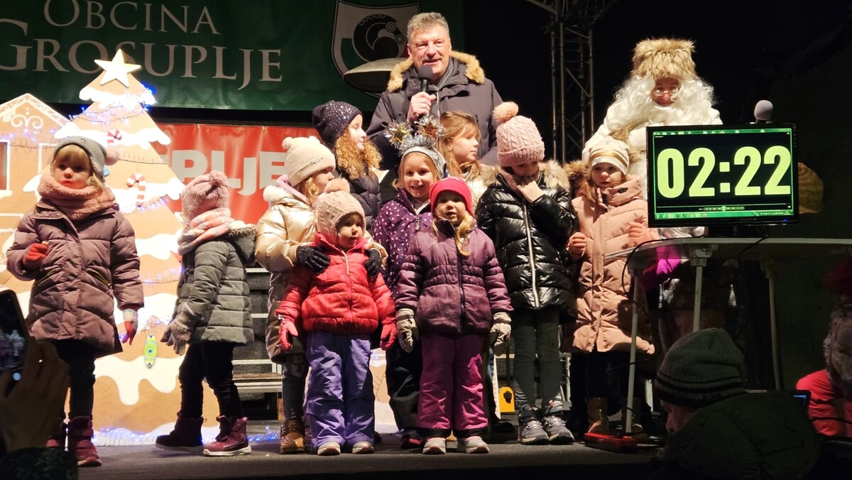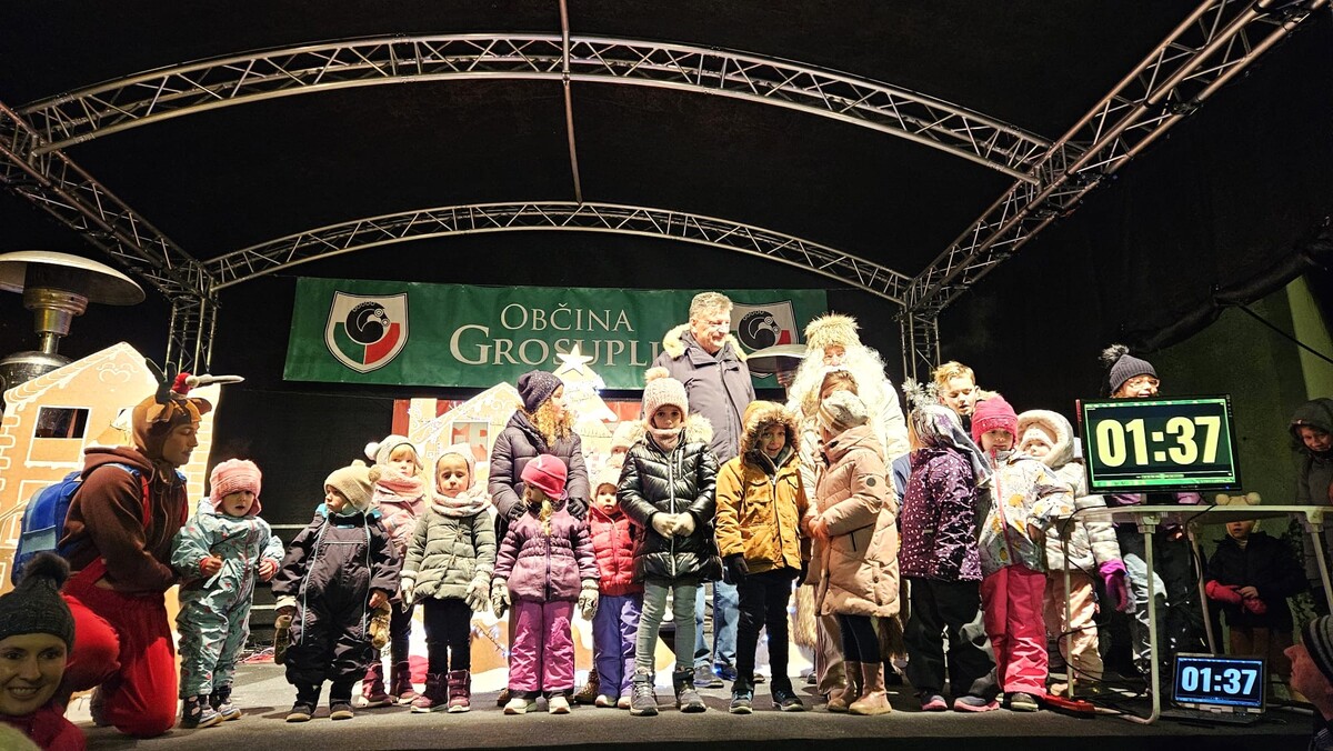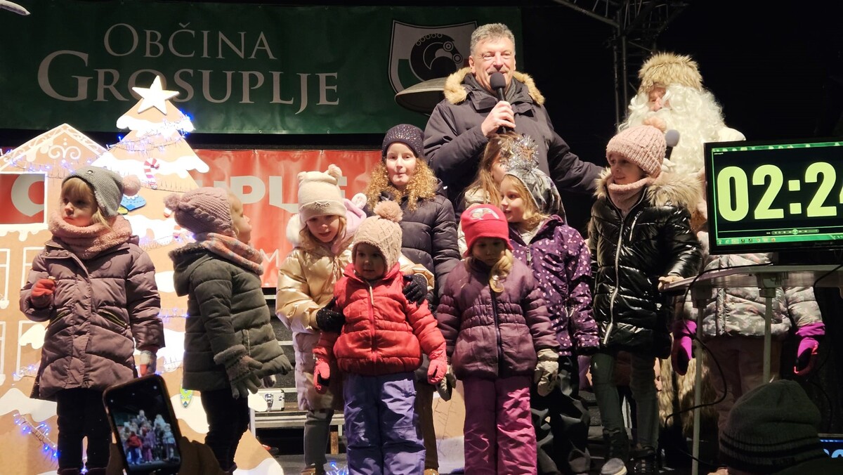 Po predstavi je otroke obiskal Dedek Mraz, jih prijazno pozdravil ter obdaril. Sledil je vrhunec popoldneva - skupno odštevanje do otroškega novega leta, ki sta ga Dedek Mraz in župan dr. Peter Verlič pospremila z lepimi željami in dobrimi mislimi za prihajajoče leto.